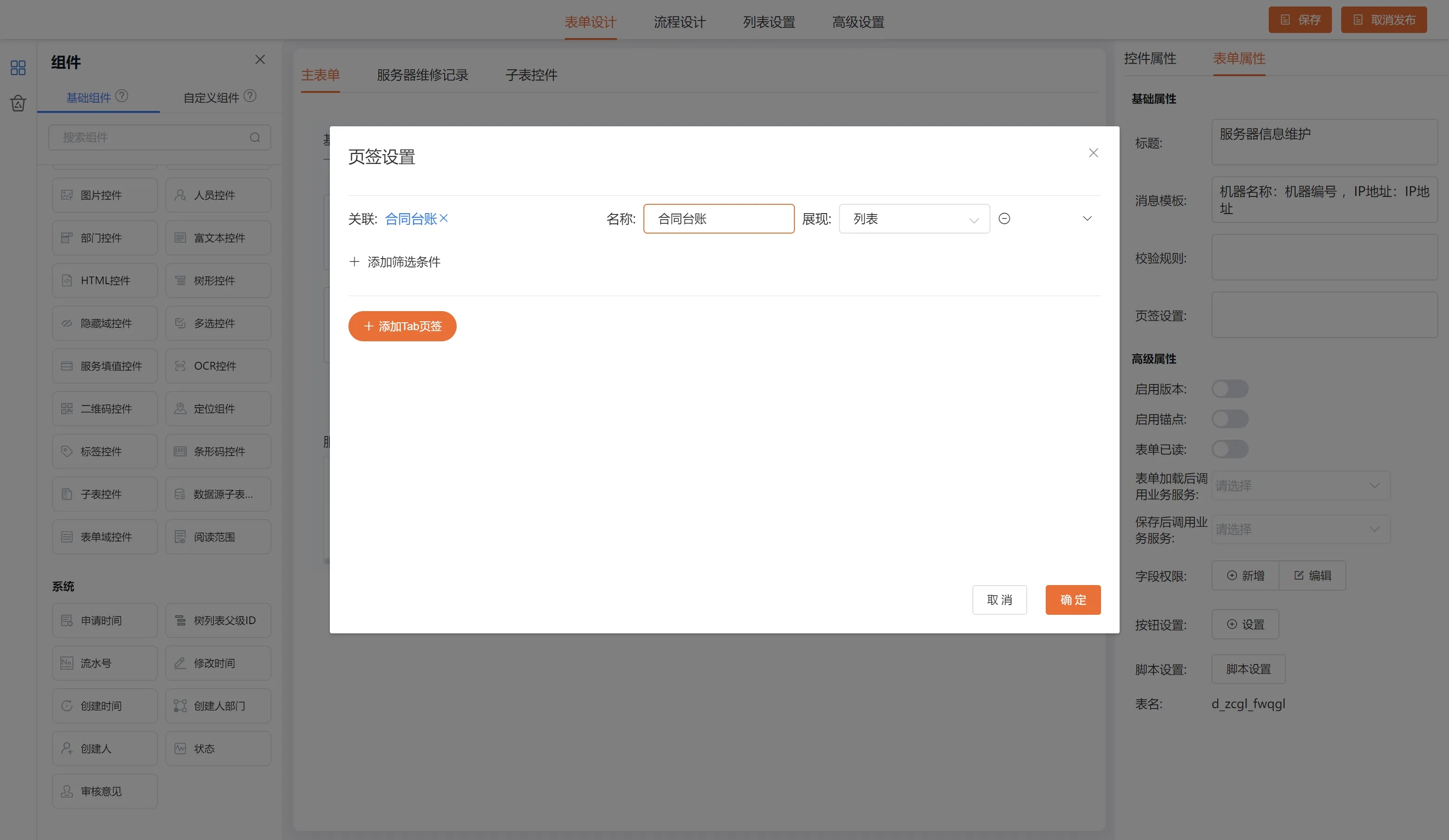 基础属性-页签设置