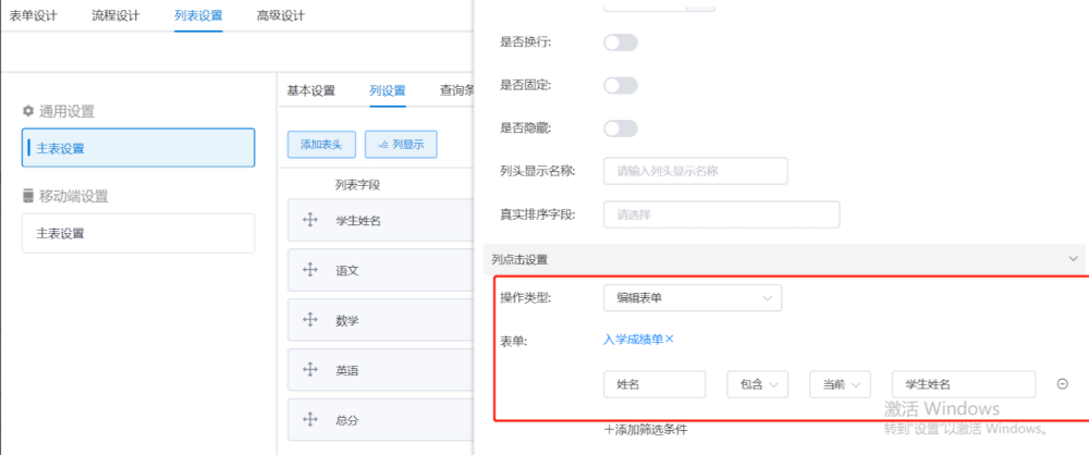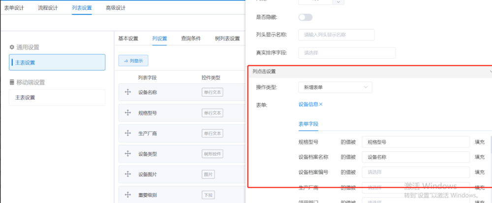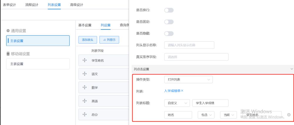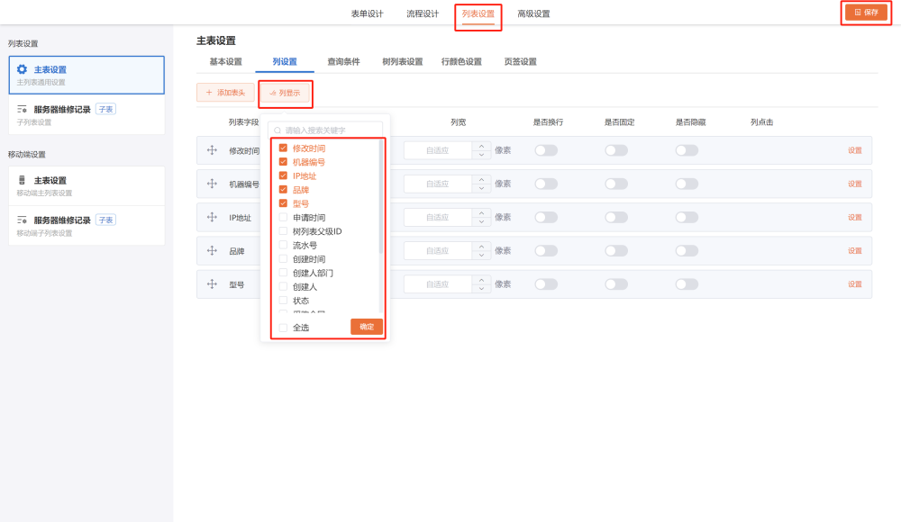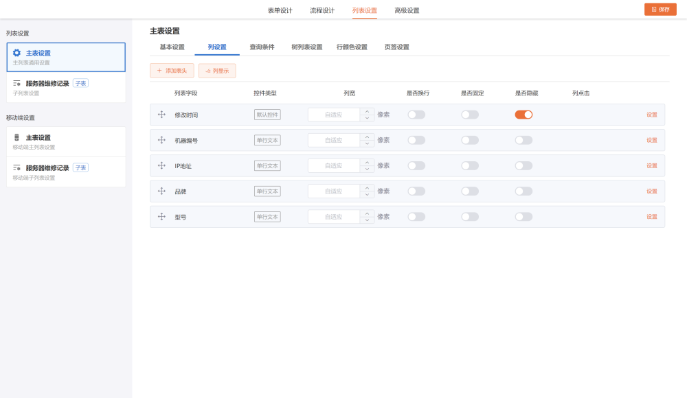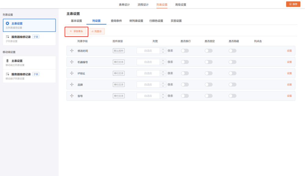 列设置