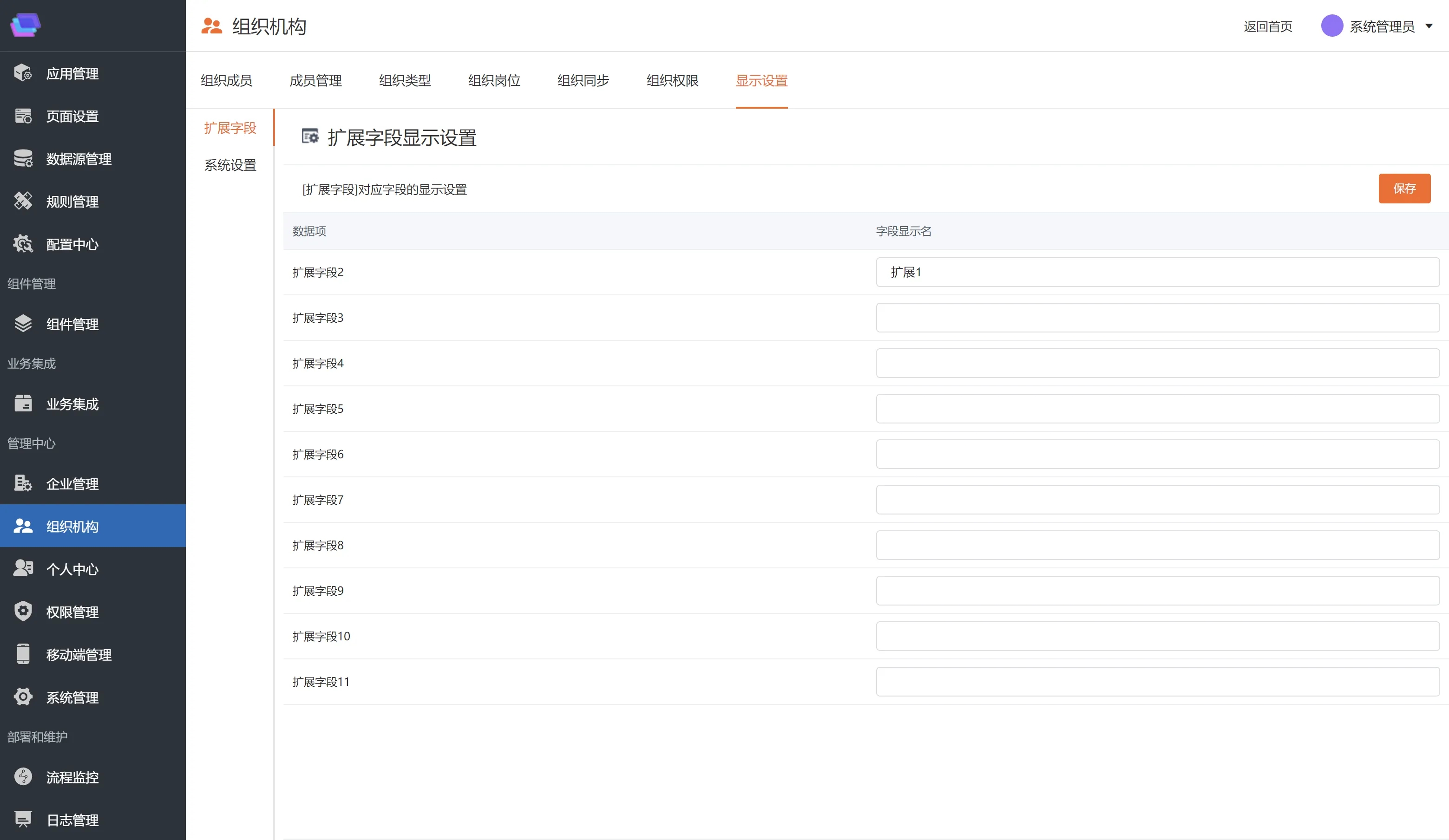 # 显示设置 ### 功能说明 [用户资料]对应字段的显示设置  修改完之后,点击”保存”按钮