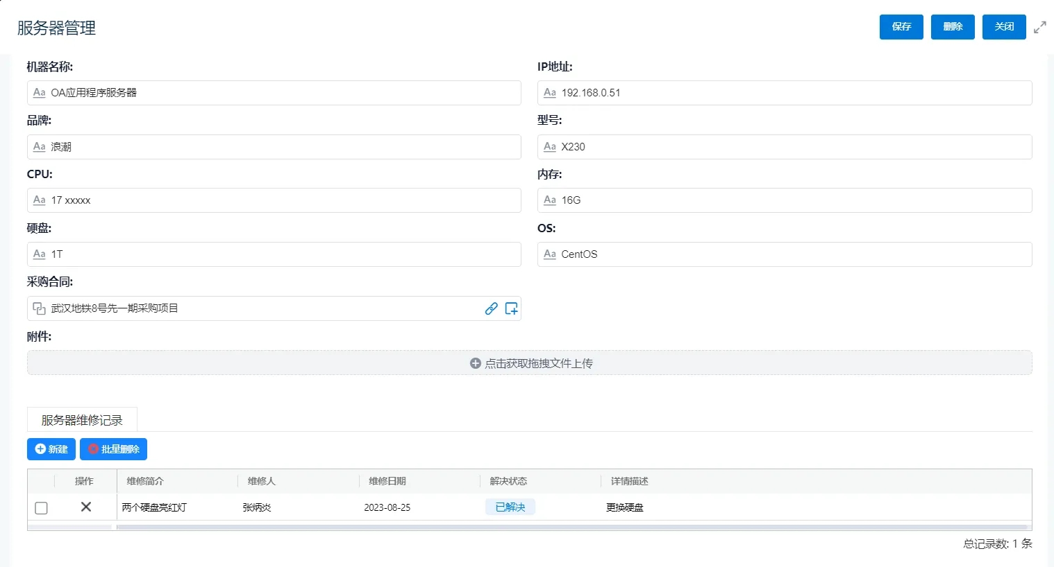 # 子表管理 场景说明:基于2.1章构建的“服务器管理”,客户需要添加维护子表,便于服务器的维护记录管理。