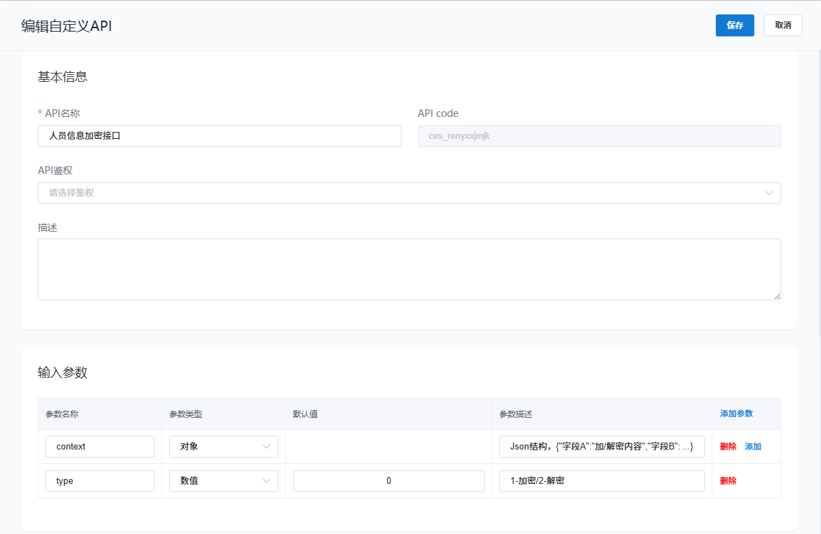 人员信息加/解密自定义接口示例