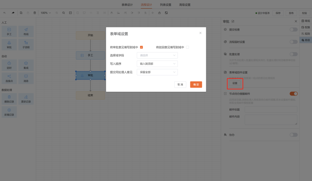 表单字段导入配置手动修改