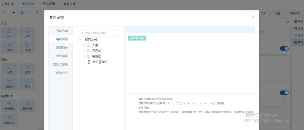 创建人、部门等控件